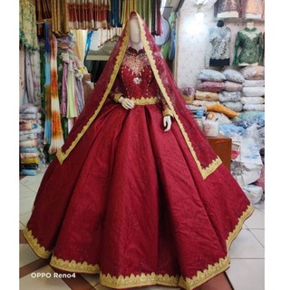 Beli gaun pengantin warna merah maroon terbaru di shopee. Baju gaun pengantin warna merah marun model krinolin full payet motif bunga garis garis wedding dress gown mekar muslim wanita perempuan muslimah hijab .